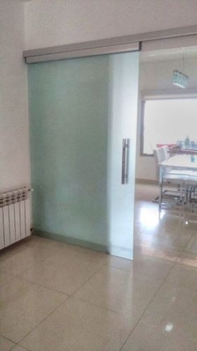Sistema corredizo oculto con panel de vidrio templado incoloro...