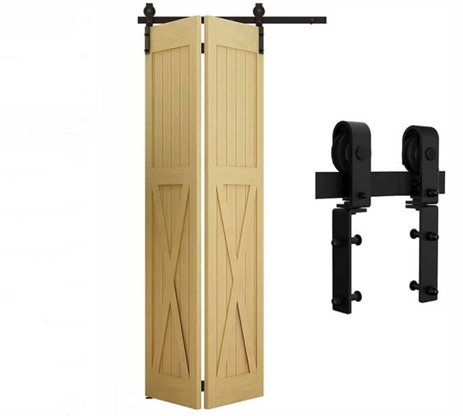 Sistema corredizo-plegadizo granero en negro con panel de melamina o laqueado color con vidrio 4mm incoloro o esmerilado. Aplicable en lugares donde no hay espacio para alojar la puerta al abrir.
